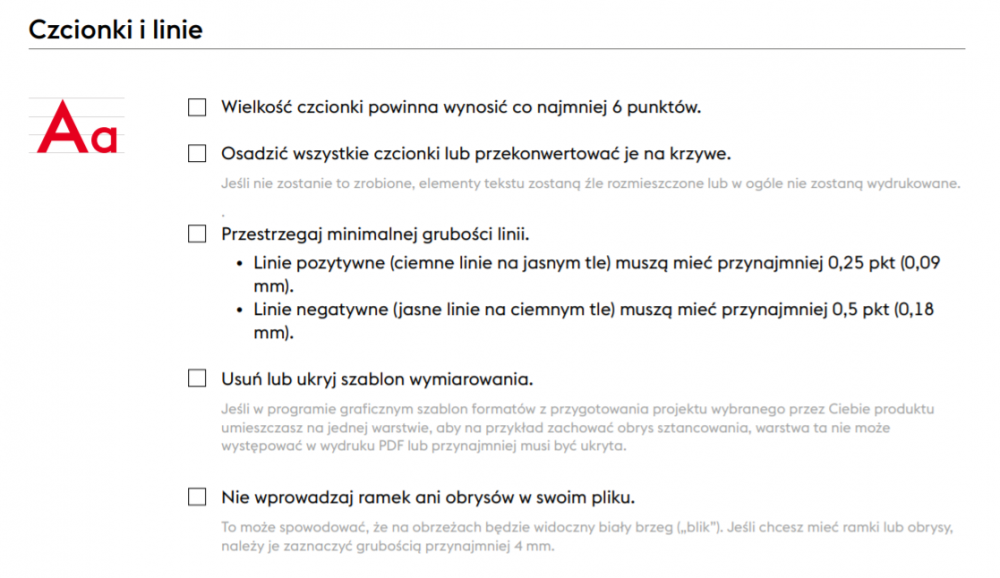 Łatwe tworzenie danych do druku - kompaktowa lista kontrolna