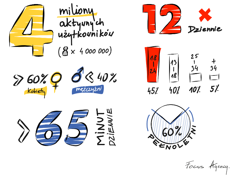 W Polsce jest ponad 4 miliony aktywnych użytkowników. Średnio odwiedzają platformę 12 razy dziennie, a w aplikacji spędzają ponad 65 minut. W czasach gdzie czas i uwaga są najcenniejsze te dane robią wrażenie.