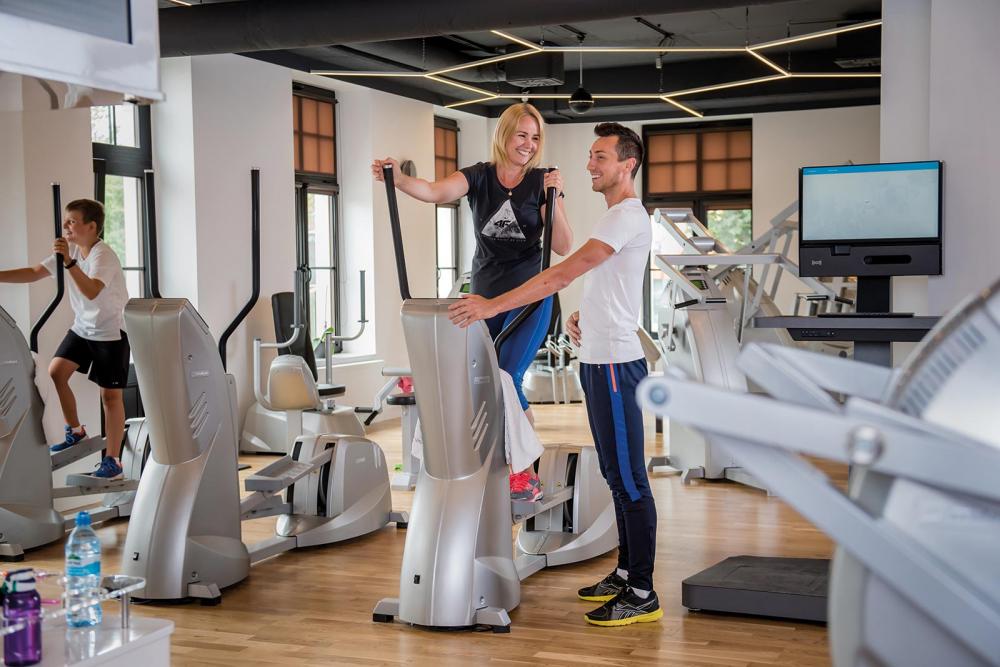 z osobą ćwiczącą, na bieżąco dostosowując tempo ćwiczeń oraz ciężary.