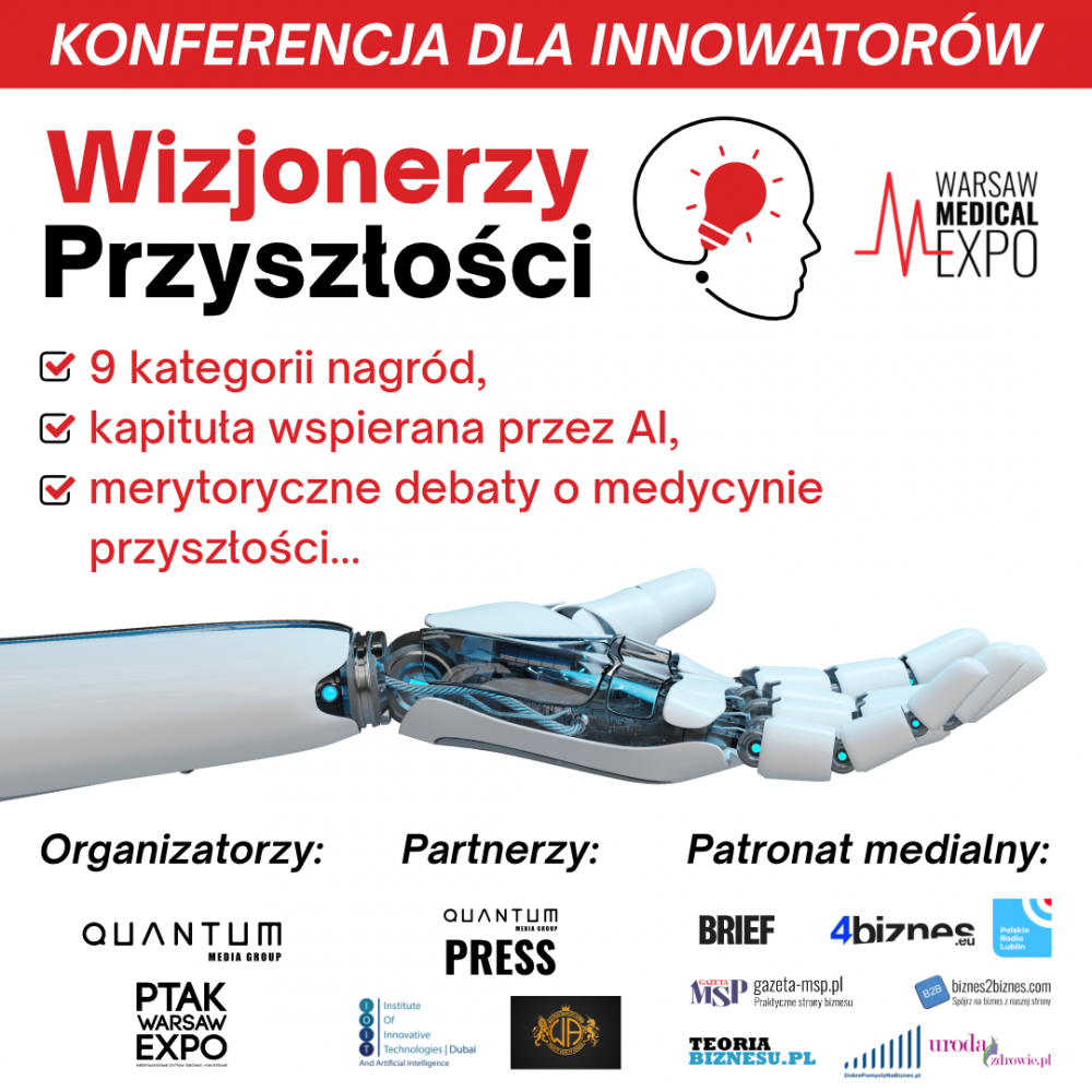 Konferencja "Wizjonerzy Przyszłości" Medical EXPO to nie tylko platforma do prezentacji innowacji, ale także miejsce wymiany wiedzy i inspiracji, które umożliwia tworzenie nowych, przyszłościowych rozwiązań w medycynie. Zapraszamy wszystkich liderów i innowatorów branży medycznej do udziału w tym wyjątkowym wydarzeniu w dniach 6-7 Grudzień. Więcej na https://warsawmedicalexpo.com/wizjonerzy-przyszlosc/