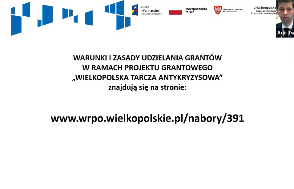 Obecnie trwają prace nad wyłonieniem grantodawcy, czyli podmiotu, który będzie udzielał dotacji wielkopolskim mikro i małym przedsiębiorcom. Informacje o możliwości składania wniosków zostaną zamieszczone na stronie internetowej https://wrpo.wielkopolskie.pl oraz na profilach WRPO 2014+ w mediach społecznościowych (Facebook, Twitter). Ponadto, na stronie internetowej WRPO 2014+ została umieszczona informacja nt. najważniejszych założeń dot. ww. pomocy finansowej (zob. https://wrpo.wielkopolskie.pl/dowiedz-sie-wiecej-o-programie/fundusze-a-koronawirus/przygotowujemy-wsparcie-przedsiebiorstw-w-zakresie-finansowania-kapitalu-obrotowego).Wszystkie informacje są zamieszczane w zakładce Fundusze a koronawius, gdzie publikowane są aktualności oraz najważniejsze pytania i odpowiedzi dla przedsiębiorców w związku z pandemią. Dodatkowo informacji o Funduszach Europejskich udzielają konsultanci w Punktach Informacyjnych Funduszy Europejskich w województwie wielkopolskim (zob. https://wrpo.wielkopolskie.pl/punkty-informacyjne) - przekazał Rafał Kondola z Departamentu Organizacji i Kadr.